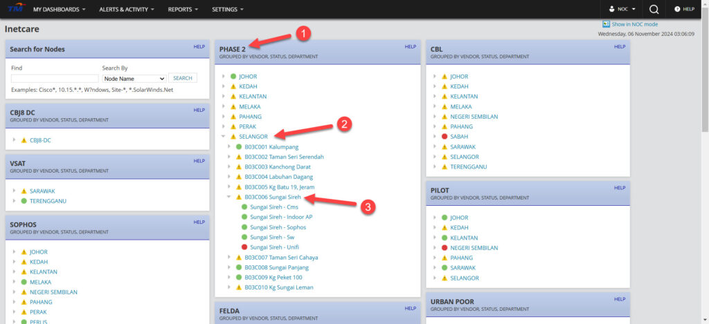 Assalamualaikum. Disini saya tunjukkan bagaimana untuk petugas NADi untuk melihat data solarwind mengikut site anda. Tujuan untuk monitoring solarwind ini adalah untuk melihat segala network equipment di NADi dalam status online ataupun offline.